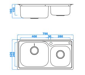 型號(hào):637AY款式:雙盆總尺寸:796*426*196mm大盆:400*340*190 mm小盆:280*290*150 mm