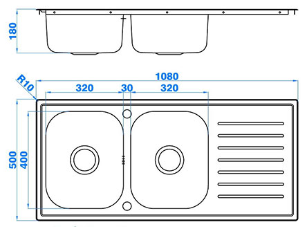 型號:151-H2款式:單瀝水板雙盆安裝方式:嵌入式總尺寸:1080*500 mm雙盆:320*400*180 mm