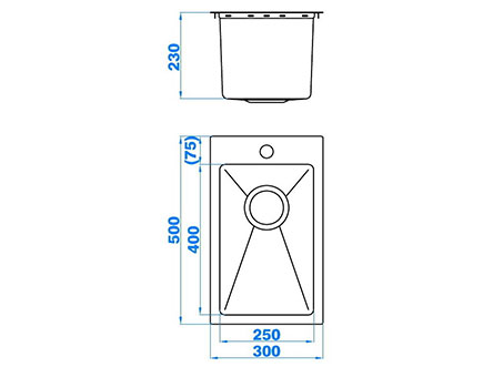 型號:5423款式:單盆安裝方式:嵌入式總尺寸:300*500 mm大盆:250*400*230 mm