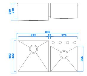 型號(hào):YP1805款式:雙盆總尺寸:889*482*240/210mm大盆:432*432*240 mm小盆:378*355*210 mm