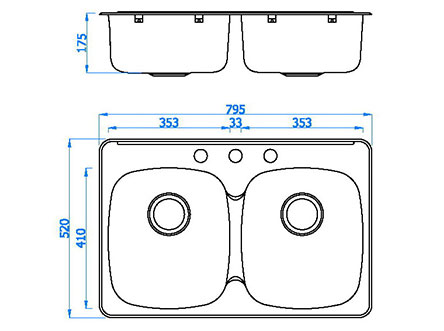 型號(hào):704款式:雙盆安裝方式:嵌入式總尺寸:795*520 mm雙盆:355*410*175 mm