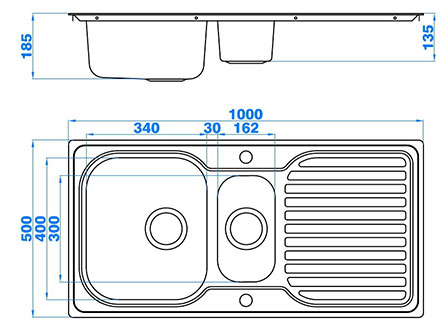 型號(hào):149Y款式:單瀝水板雙盆安裝方式:嵌入式總尺寸:1000*500 mm大盆:340*400*185 mm小盆:162*300*135 mm