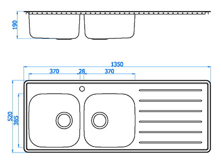 型號(hào):120款式:單瀝水板雙盆安裝方式:嵌入式總尺寸:1350*520 mm雙盆:370*385*190 mm