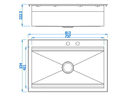 型號(hào):5417款式:單盆安裝方式:嵌入式總尺寸:813*534 mm大盆:737*421*222.5 mm